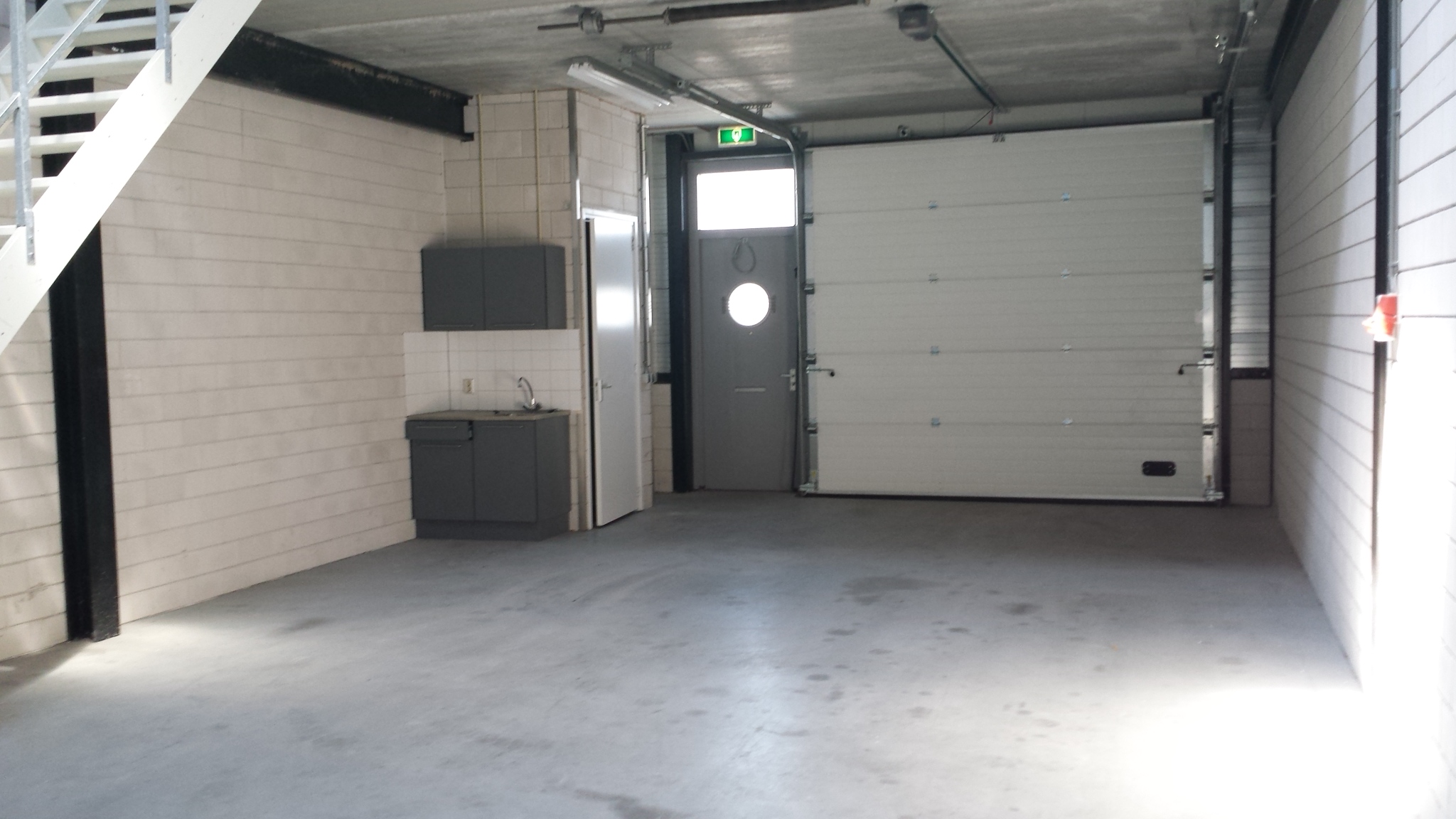 Entree; meterkast (gas, water, elektra, data); toiletruimte v.v. wit sanitair en licht tegelwerk; pantry (2 boven- en 2 onderkastjes met 1x lade) v.v. close-in boiler; elektrische bedienbare overheaddeur (3.25m x 3.00m); verlichting middels tl armaturen; vrije hoogte 3.25m en 6m; gladde betonvloer; vloerbelasting begane grond tot 2.500 kg/m²; vloerbelasting verdieping tot 500 kg/m²; lichtkoepel(s) en/of raampartij; buitenverlichting.