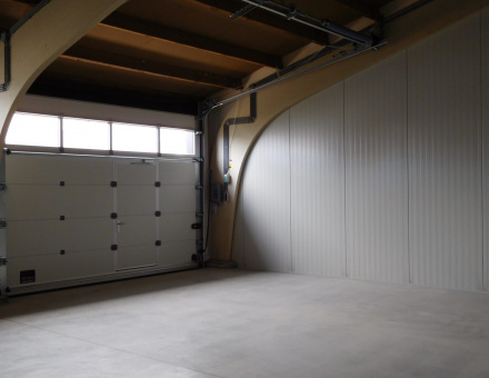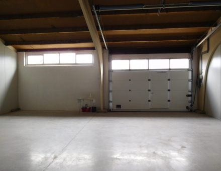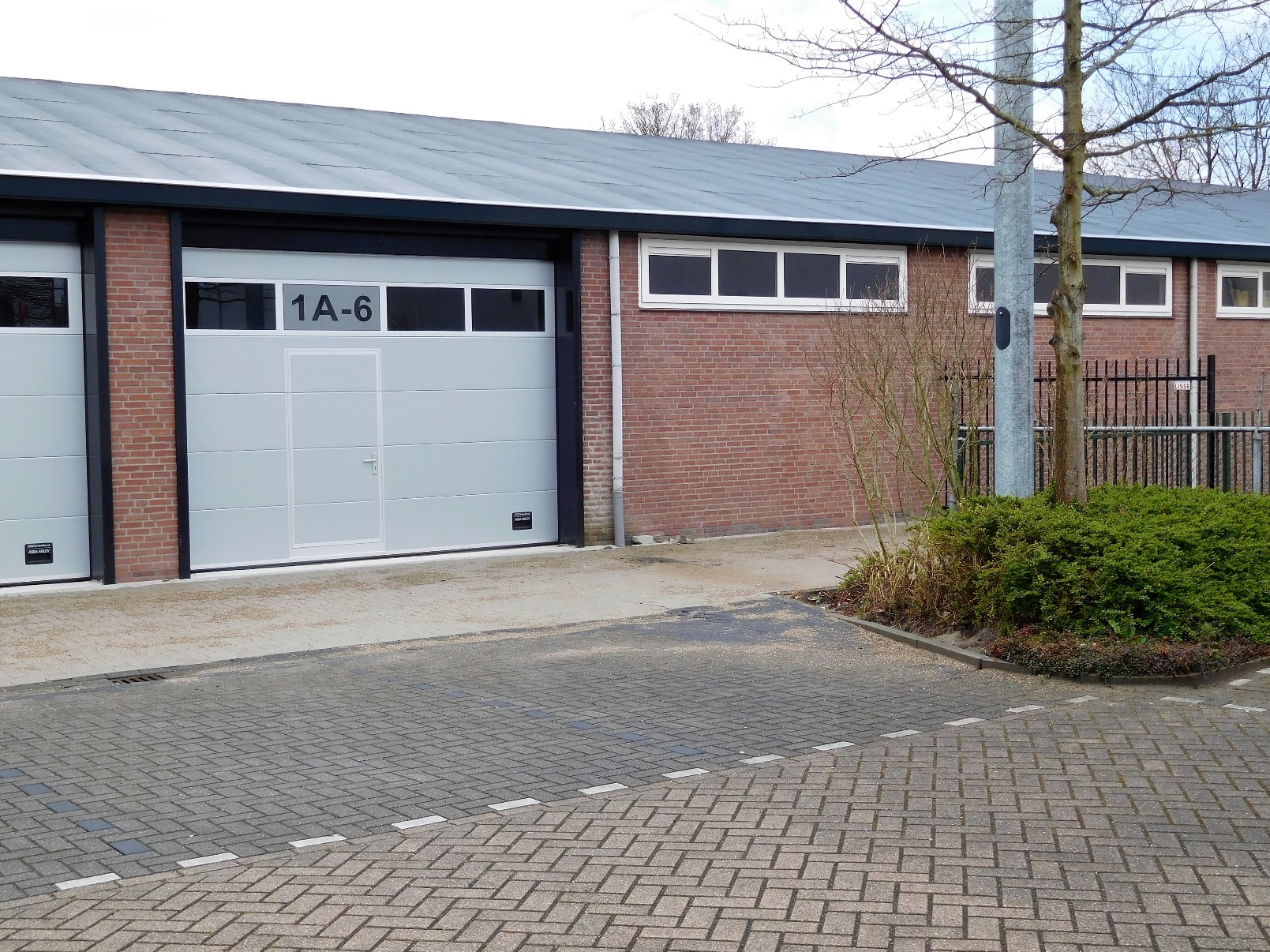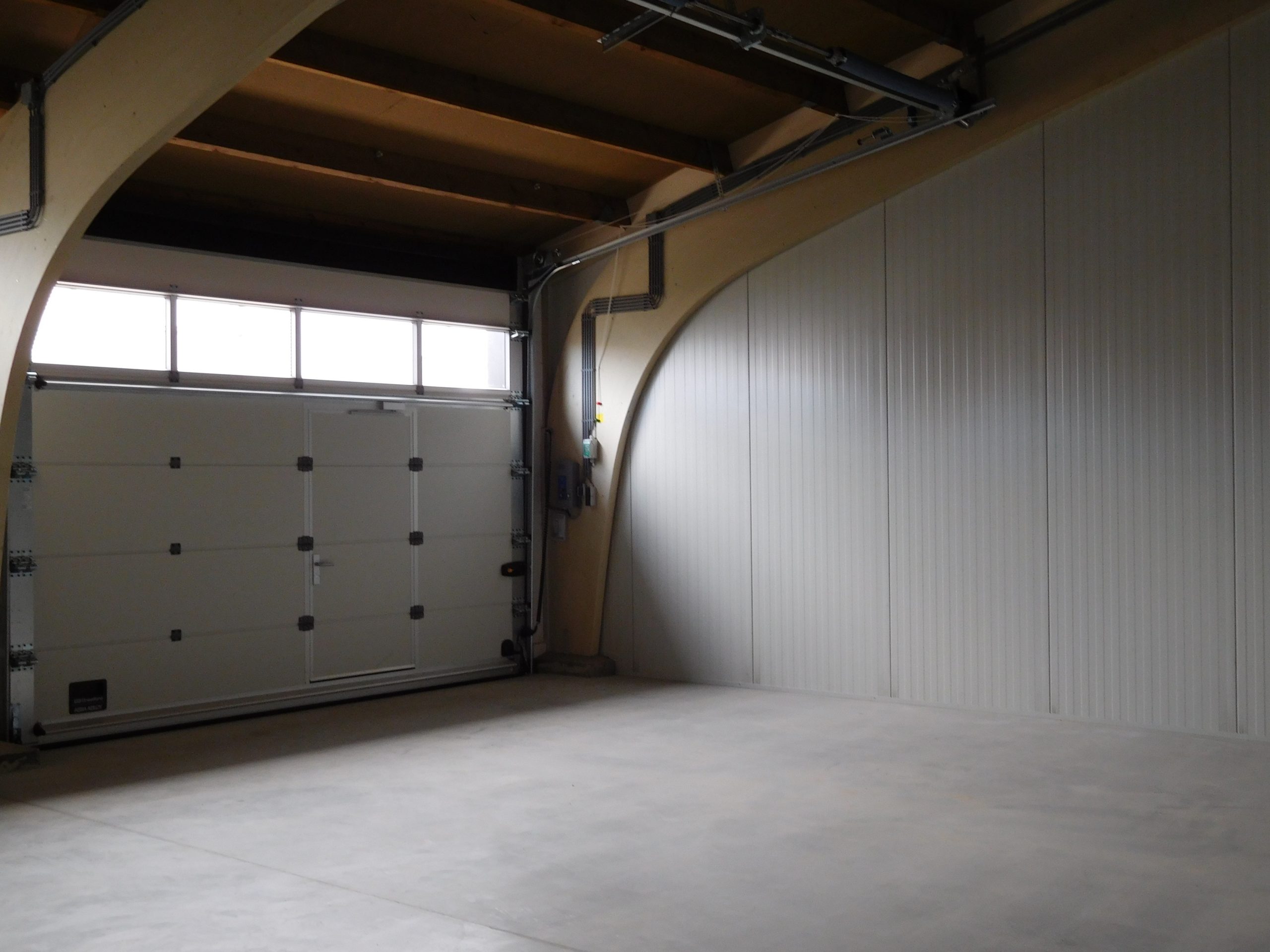 – Elektrisch bedienbare overheaddeur (3.20m x 4.20m) met loopdeur en vol glas panelen